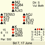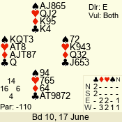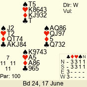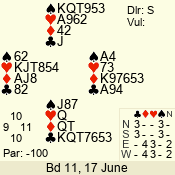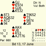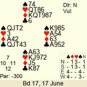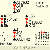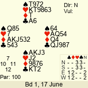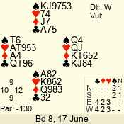 | 3 NT | S | +1 | 630 | 8 | 04 - 01 | 4 | 4 |