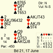| Con | Dc | Res | Score | Ld | Pairs | Rd | Tbl | 4  | N | +1 | 450 | A | 03 - 06 | 6 | 3 |
