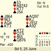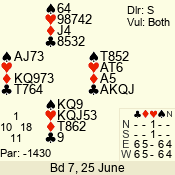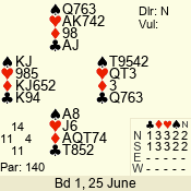 | Con | Dc | Res | Score | Ld | Pairs | Rd | Tbl | Sec | | 3 N | N | +1 | 430 | 3 | 05 - 01 | 4 | 4 | d |