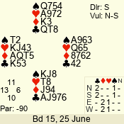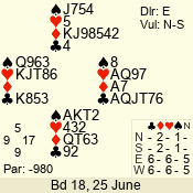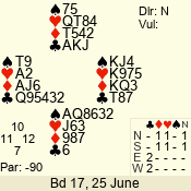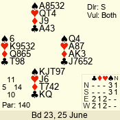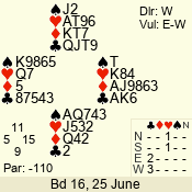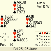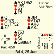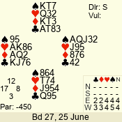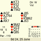 | Con | Dc | Res | Score | Ld | Pairs | Rd | Tbl | Sec | | 2 N | E | -3 | 150 | 6 | 12 - 06 | 6 | 1 | d |