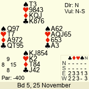 Con | Dc | Res | Score | Ld | Pairs | Rd | Tbl | 4  | N | +1 | 450 | 4 | 01 - 05 | 3 | 1 |