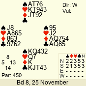 Con | Dc | Res | Score | Ld | Pairs | Rd | Tbl | 4  | S | +1 | 450 | 9 | 02 - 03 | 6 | 2 |