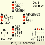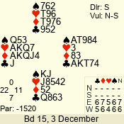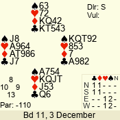 Con | Dc | Res | Score | Ld | Pairs | Rd | Tbl | 3  | E | -3 | 150 | A | 03 - 03 | 1 | 3 |