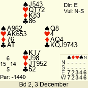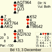 Con | Dc | Res | Score | Ld | Pairs | Rd | Tbl | 3 NT | N | +2 | 460 | J | 02 - 03 | 6 | 2 |