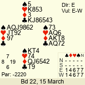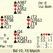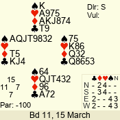 | Con | Dc | Res | Score | Ld | Pairs | Rd | Tbl | Sec |  | 3 N | N | +2 | 460 | 2  | 03 - 01 | 3 | 3 | b |