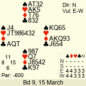| Con | Dc | Res | Score | Ld | Pairs | Rd | Tbl | Sec |  5   | S | = | 600 | 4  | 03 - 05 | 5 | 3 | b |