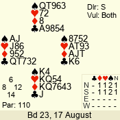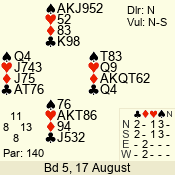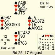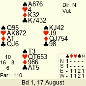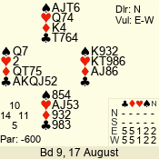 | 3 NT | W | +1 | -630 | 8 | 04 - 09 | 1 | 5 |