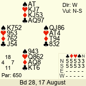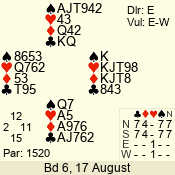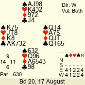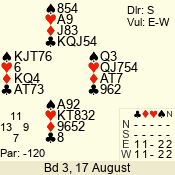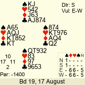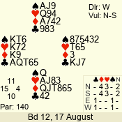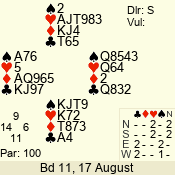 | 3 NT | W | +3 | -690 | A | 08 - 05 | 5 | 1 |