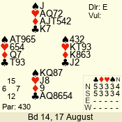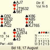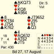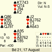| 3 NT | E | +1 | -430 | 4 | 10 - 02 | 3 | 3 |