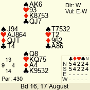 | 3 NT | W | +1 | -430 | 3 | 04 - 09 | 1 | 5 |