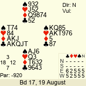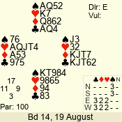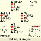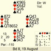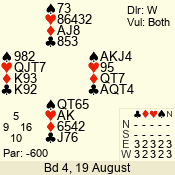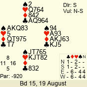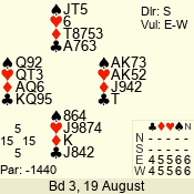 | 3 NT | W | +1 | -430 | T | 07 - 08 | 8 | 7 |