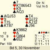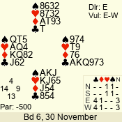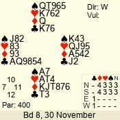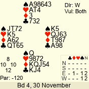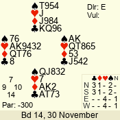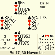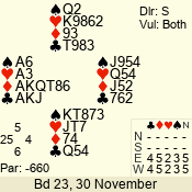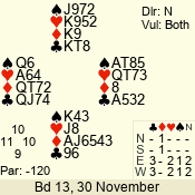 | 3 NT | W | +2 | -660 | 6 | 07 - 05 | 4 | 3 |