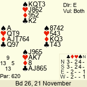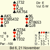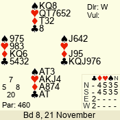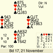 Con | Dc | Res | Score | Ld | Pairs | Rd | Tbl | 3 N | N | +2 | 460 | 9 | 01 - 06 | 3 | 1 |