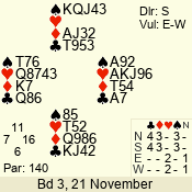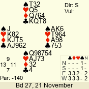 Con | Dc | Res | Score | Ld | Pairs | Rd | Tbl | 2  | S | +1 | 140 | 5 | 04 - 06 | 6 | 4 |