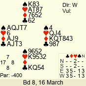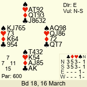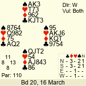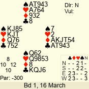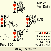 Con | Dc | Res | Score | Ld | Pairs | Rd | Tbl | 3 N | S | = | 600 | 4 | 04 - 01 | 4 | 4 |