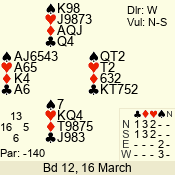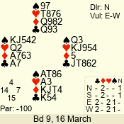 Con | Dc | Res | Score | Ld | Pairs | Rd | Tbl | 1  | W | -3 | 150 | Q | 02 - 01 | 2 | 2 |