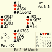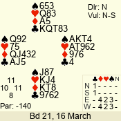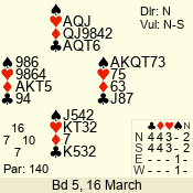 Con | Dc | Res | Score | Ld | Pairs | Rd | Tbl | 4  | S | +1 | 450 | K | 01 - 05 | 3 | 1 |