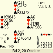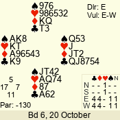 Con | Dc | Res | Score | Ld | Pairs | Rd | Tbl | 4 x | E | -2 | 500 | 2 | 03 - 06 | 11 | 3 |
