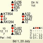 Con | Dc | Res | Score | Ld | Pairs | Rd | Tbl | 3 N | S | +1 | 430 | 3 | 05 - 03 | 1 | 6 |