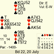 Con | Dc | Res | Score | Ld | Pairs | Rd | Tbl | 4  | E | -4 | 400 | 2 | 11 - 01 | 7 | 2 |
