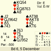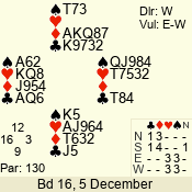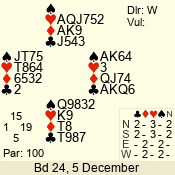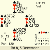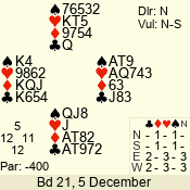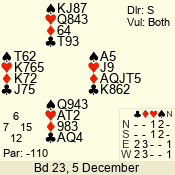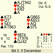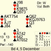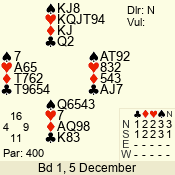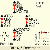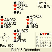 | 3 NT | E | +1 | -630 | 2 | 02 - 10 | 3 | 2 |