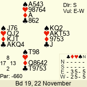3 NT | W | +2 | -660 | 9 | 05 - 10 | 6 | 5 |