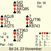 Con | Dc | Res | Score | Ld | Pairs | Rd | Tbl | 4  | S | +1 | 450 | 4 | 04 - 09 | 6 | 4 |