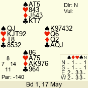 1 NT | W | +2 | -150 | 2 | 05 - 12 | 6 | 5 |