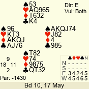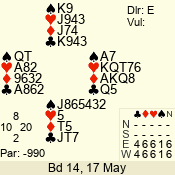 Con | Dc | Res | Score | Ld | Pairs | Rd | Tbl | 4 x | E | -2 | 300 | Q | 11 - 12 | 12 | 11 |