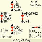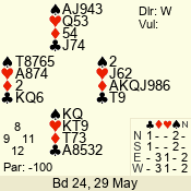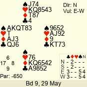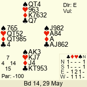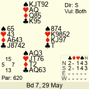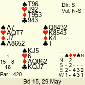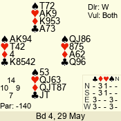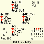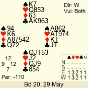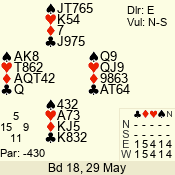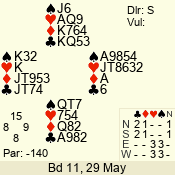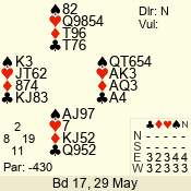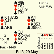 3 NT | S | +1 | 430 | Q | 05 - 04 | 2 | 5 |
