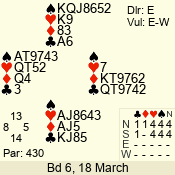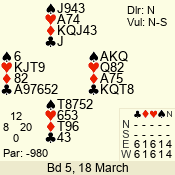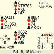 3 NT | E | +1 | -430 | 6 | 08 - 05 | 4 | 8 |