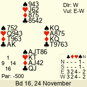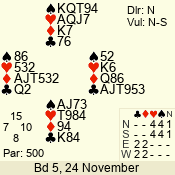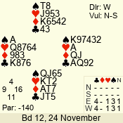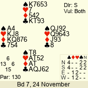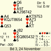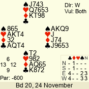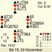 | 3 NT | S | +1 | 430 | 2 | 03 - 07 | 7 | 3 |