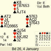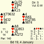 Con | Dc | Res | Score | Ld | Pairs | Rd | Tbl | 1  | S | +2 | 140 | 3 | 01 - 11 | 15 | 1 |