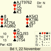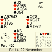 | Con | Dc | Res | Score | Ld | Pairs | Rd | Tbl | 4  | N | = | 420 | A | 02 - 04 | 6 | 2 |