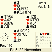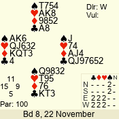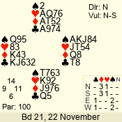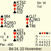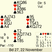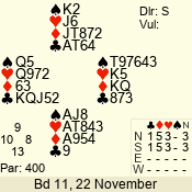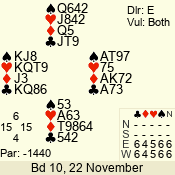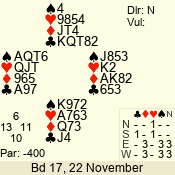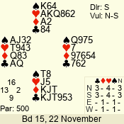 | Con | Dc | Res | Score | Ld | Pairs | Rd | Tbl | | 3 N | S | +2 | 460 | 4 | 01 - 06 | 3 | 1 |