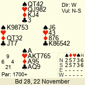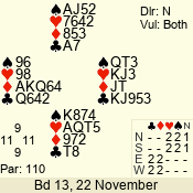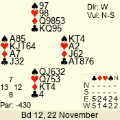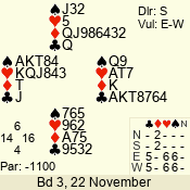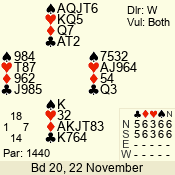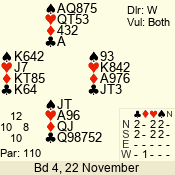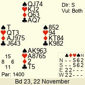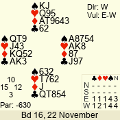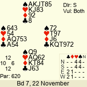 | Con | Dc | Res | Score | Ld | Pairs | Rd | Tbl | | 6 N | N | +1 | 1470 | 6 | 07 - 02 | 6 | 7 |