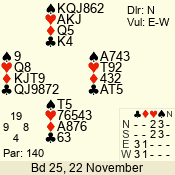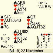 | Con | Dc | Res | Score | Ld | Pairs | Rd | Tbl | 2  | S | +1 | 140 | 6 | 02 - 06 | 4 | 2 |