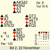 | Con | Dc | Res | Score | Ld | Pairs | Rd | Tbl | | 3 N | S | +2 | 660 | 2 | 02 - 04 | 6 | 2 |
