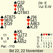 | Con | Dc | Res | Score | Ld | Pairs | Rd | Tbl | 4  | E | -3 | 150 | K | 07 - 01 | 7 | 7 |