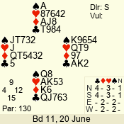 Con | Dc | Res | Score | Ld | Pairs | Rd | Tbl | 3 x | E | -4 | 1100 | 2 | 04 - 03 | 2 | 4 |