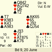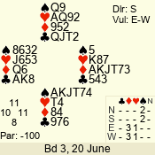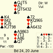 Con | Dc | Res | Score | Ld | Pairs | Rd | Tbl | 1 N x | S | +1 | 380 | 2 | 06 - 01 | 6 | 6 |
