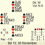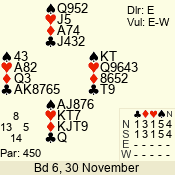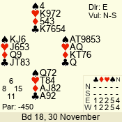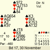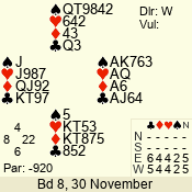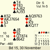 Con | Dc | Res | Score | Ld | Pairs | Rd | Tbl | 4  | S | +1 | 450 | A | 06 - 03 | 4 | 6 |