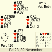 Con | Dc | Res | Score | Ld | Pairs | Rd | Tbl | 2 N | S | = | 120 | 4 | 04 - 01 | 4 | 4 |