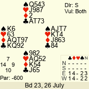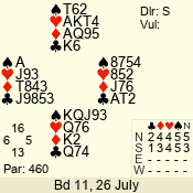 Con | Dc | Res | Score | Ld | Pairs | Rd | Tbl | 3 NT | N | +2 | 460 | 4 | 05 - 07 | 6 | 5 |