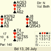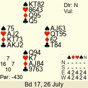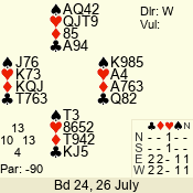 Con | Dc | Res | Score | Ld | Pairs | Rd | Tbl | 1 NT | N | = | 90 | 3 | 01 - 03 | 6 | 1 |