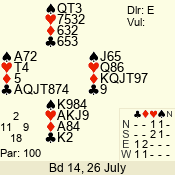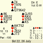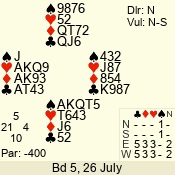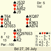 Con | Dc | Res | Score | Ld | Pairs | Rd | Tbl | 3 NT x | E | -4 | 800 | 2 | 07 - 02 | 6 | 7 |