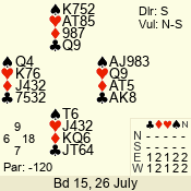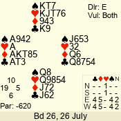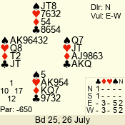Con | Dc | Res | Score | Ld | Pairs | Rd | Tbl | 4  | S | +1 | 650 | 6 | 04 - 07 | 5 | 4 |