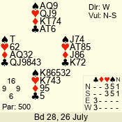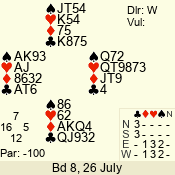 Con | Dc | Res | Score | Ld | Pairs | Rd | Tbl | 1 NT x | W | -1 | 200 | A | 04 - 05 | 7 | 4 |