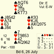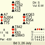 Con | Dc | Res | Score | Ld | Pairs | Rd | Tbl | 4  | S | +1 | 650 | 2 | 03 - 06 | 5 | 3 |