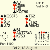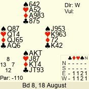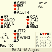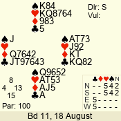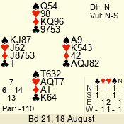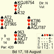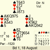 | Con | Dc | Res | Score | Ld | Pairs | Rd | Tbl | | 1 N | S | +1 | 120 | 7 | 05 - 05 | 1 | 5 |